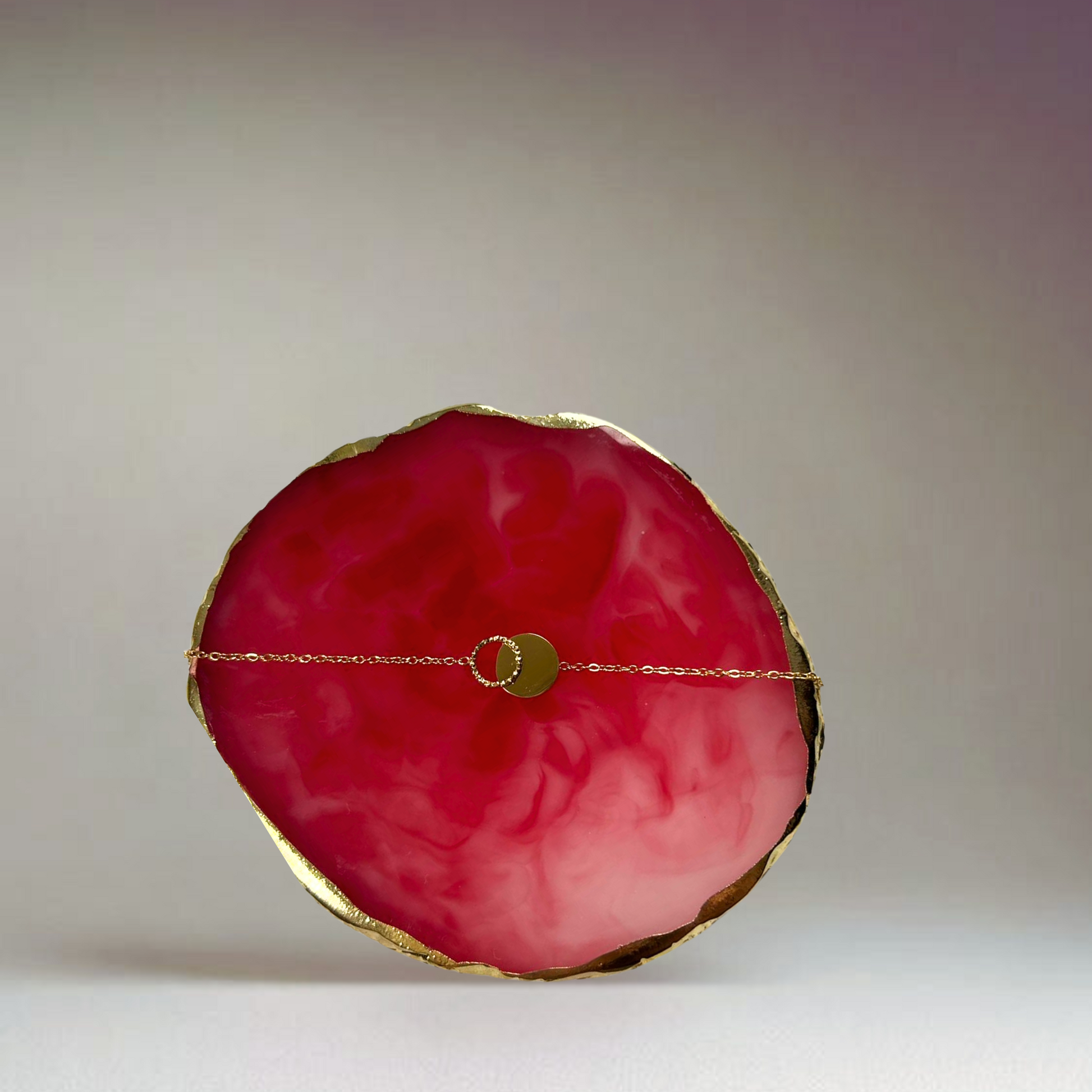 Découvrez notre collection de bijoux raffinés, où chaque pièce est soigneusement conçue pour ajouter une touche de sophistication et d'élégance à votre style. Nous sommes ravis de vous présenter notre nouveau bracelet chaîne dorée avec pastille ronde et cercle, un accessoire moderne et intemporel qui sublimera votre allure en toute occasion.